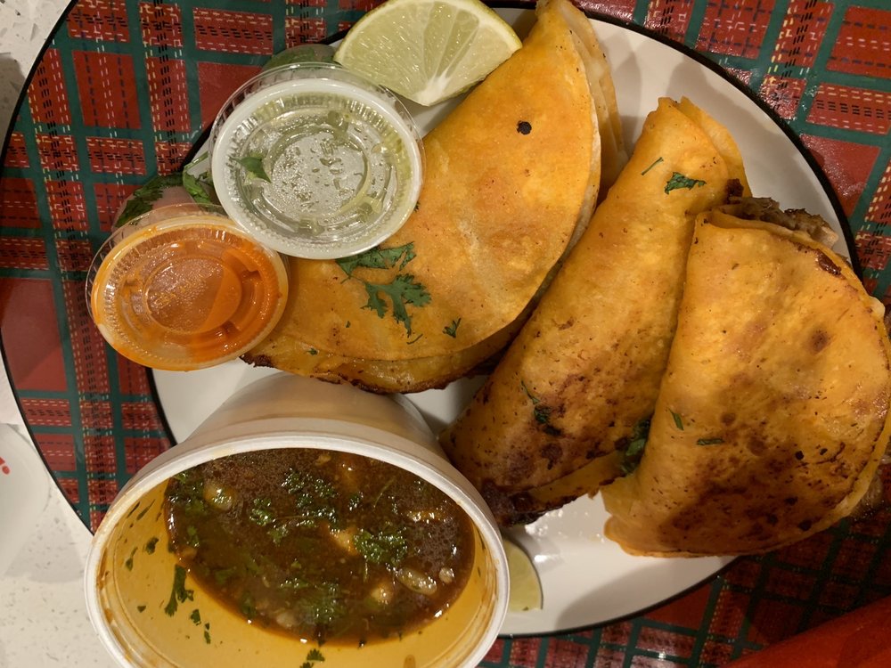 Corn tortillas with your choice of stuffing. Served with pickled cabbage