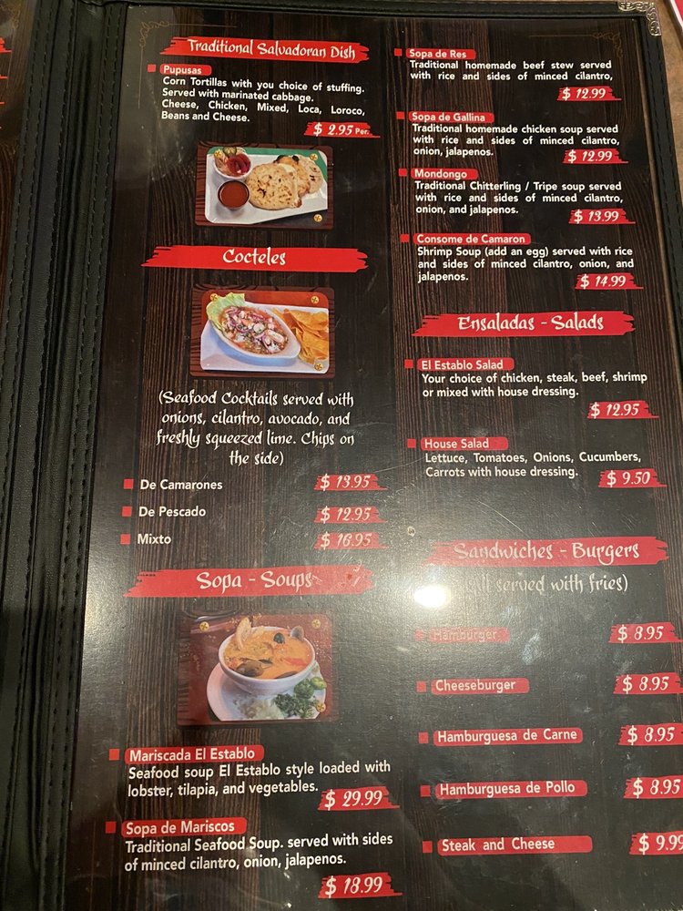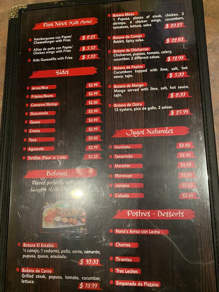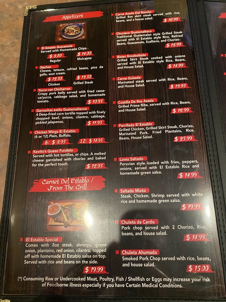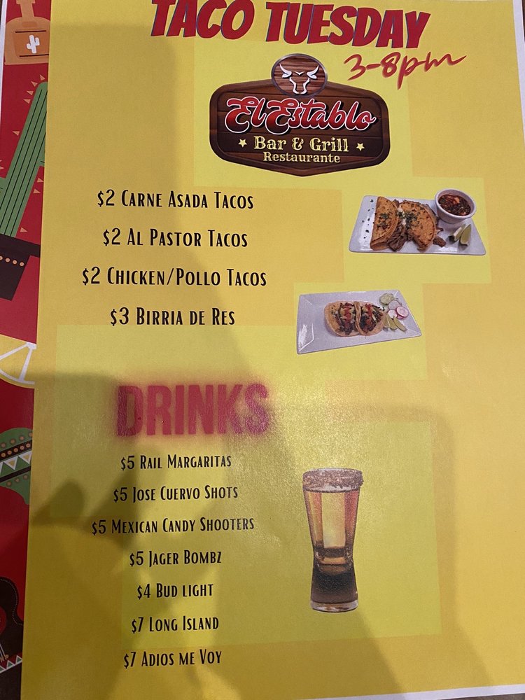 Introducing the Tex-Mex gem, El Establo Bar & Grill, located in Manassas, VA. This vibrant spot offers a wide range of appetizers, including the must-try El Establo Guacamole with homemade chips and the flavorful Nachos topped with cheese, lettuce, and more. For a unique twist, try the Yucca Con Chicarron or the Garnachas estilo Guatemaltecos. You can also indulge in their delicious Pupusas and refreshing Ceviches. Customers rave about the birria tacos, highlighting the tender meat and flavorful consommé. The restaurant's ambiance and friendly service make it a perfect spot to enjoy a casual meal with friends. Don't miss out on trying their signature cocktails recommended by their knowledgeable bartender. El Establo Bar & Grill is a great choice for those craving a taste of Tex-Mex delights in a lively setting.